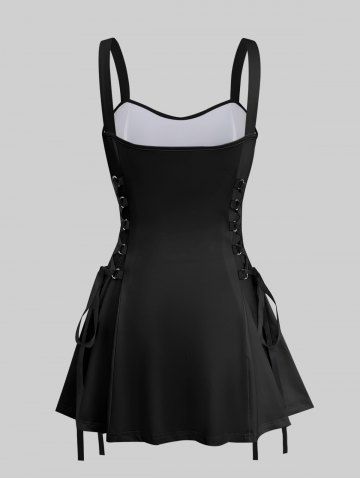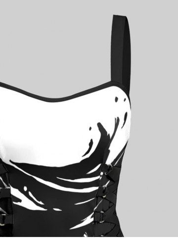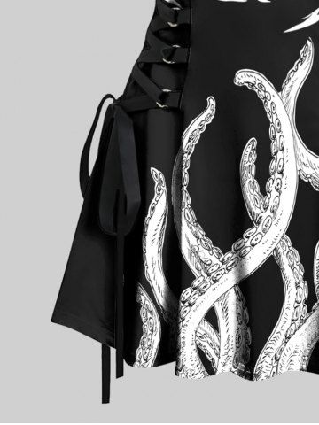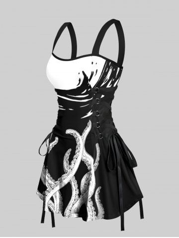 Octopus Two Tone Print Hawaii Lace Up A Line Tank Dress - Black - Xl