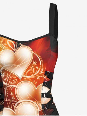 Ombre Heart Branch Light Beam Print Valentines Hawaii Lace Up A Line Tank Dress - Multi-a - Xxxl