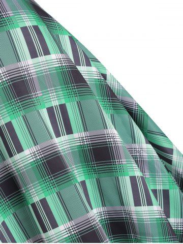 Plaid Print Bowknot Sleeveless High Waisted A Line Mini Casual Dress - Green - S