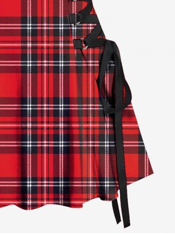 Plaid Print Lace Up Tank Dress - Red - Xs