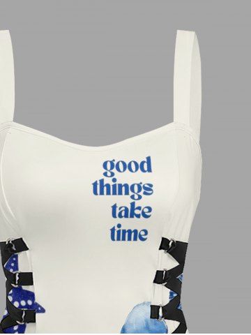 Starfish Jellyfish Turtle Flowers Print Lace Up Hawaii Tank Dress - Blue - L