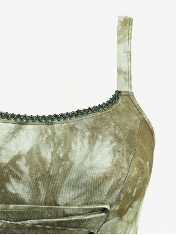 Tie Dye Print Lace-up Ruffles Lace Trim Asymmetrical Layered Tank Dress - Green - Xl