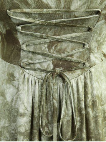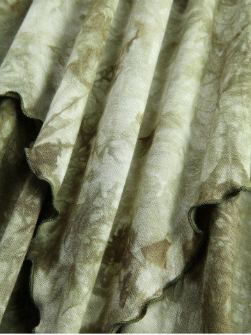Tie Dye Print Lace-up Ruffles Lace Trim Asymmetrical Layered Tank Dress - Green - Xxl