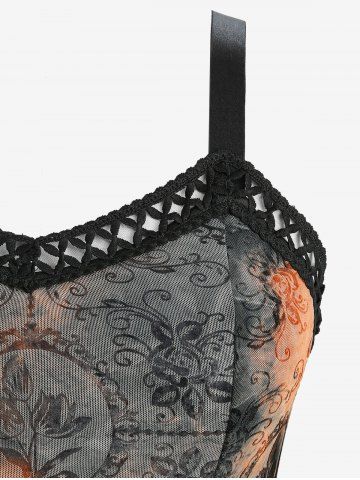 Tulip Flower Flocking Tie Dye Mesh Patchwork A Line Cami Dress with Removable Belt - Black - M