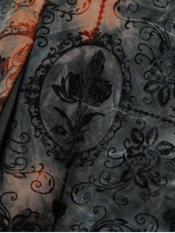 Tulip Flower Flocking Tie Dye Mesh Patchwork A Line Cami Dress with Removable Belt - Black - L