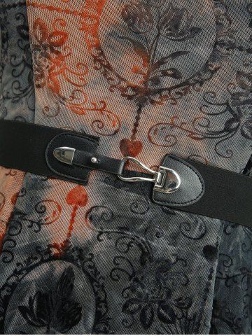 Tulip Flower Flocking Tie Dye Mesh Patchwork A Line Cami Dress with Removable Belt - Black - Xxxl