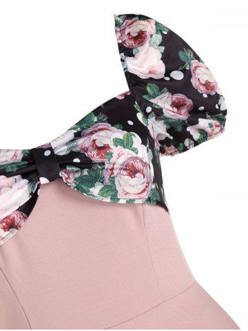 Vintage Flower Polka Dots Print Sweetheart Neck Mini A Line Milkmaid Dress - Light Pink - 2xl