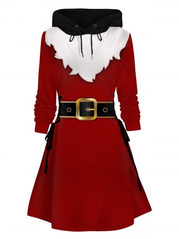 Christmas Belted 3D Print Lace Up Hoodie Dress - Red - L | Us 8