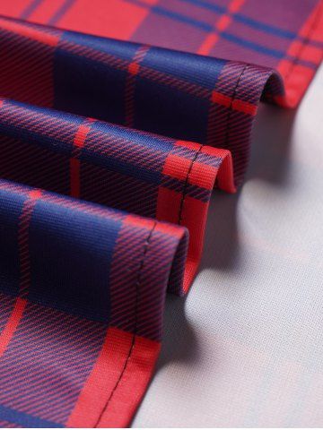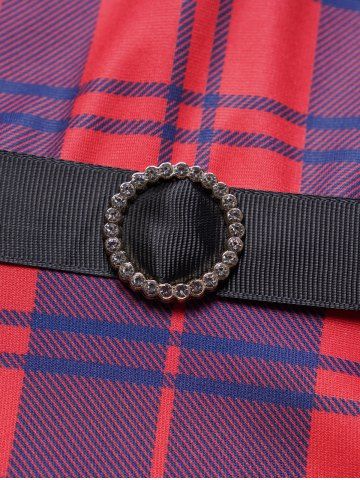 Plaid Print Faux Fur High Low Long Sleeve Dress - Red - S