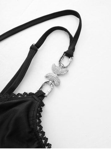 Plus Size Crossover Bust Crisscross Strappy Butterfly Buckle Decor Sequins Layered A Line Party Cami Dress - Black - 1x | Us 14-16
