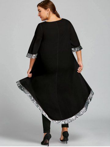 Plus Size Glitter Sequin Trim Cutout High Low Dress - Black - 5x | Us 30-32