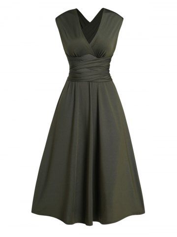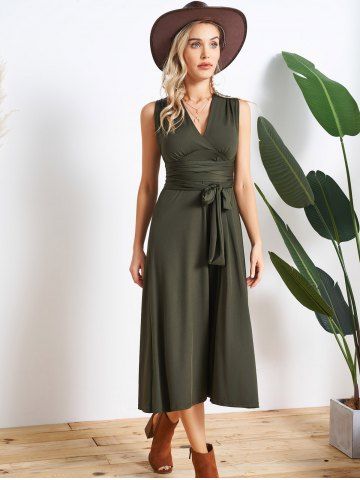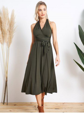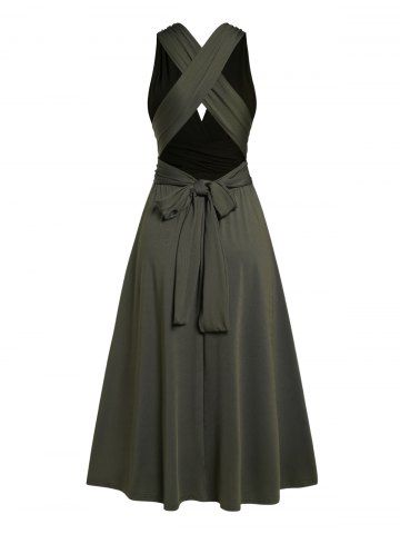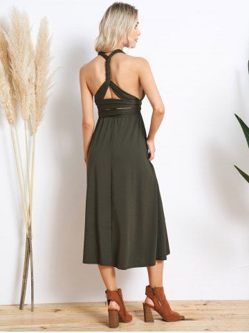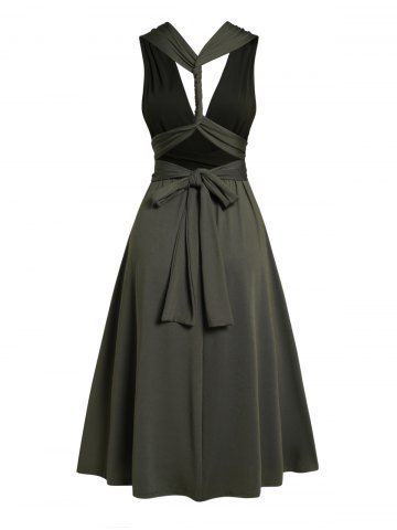 Solid Color Multi-way Plunge Bandage Party Midi Dress - Deep Green - Xl