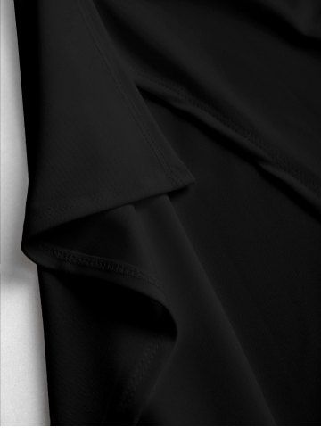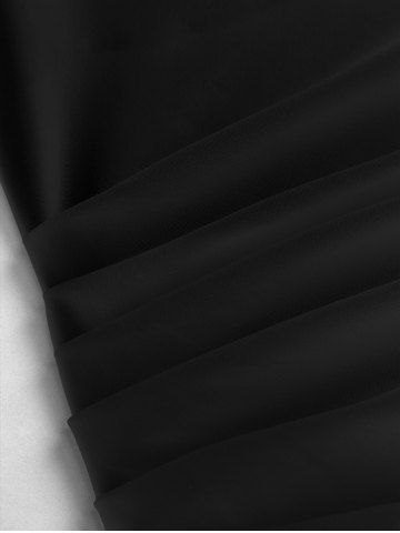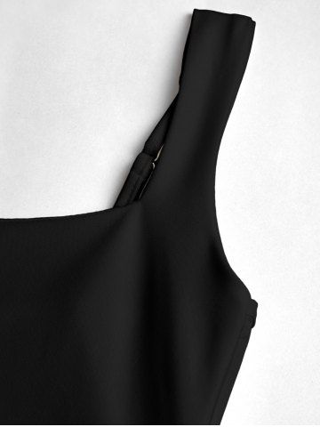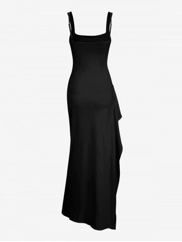 Women's Sexy Elegant Solid Color Backless Ruched Draped Thigh High Split Square Neck Adjustable Shoulder Straps Party Evening Gown Maxi Dress - Black - L