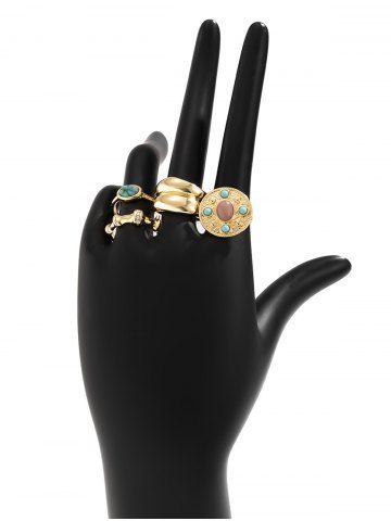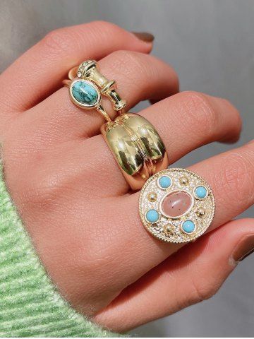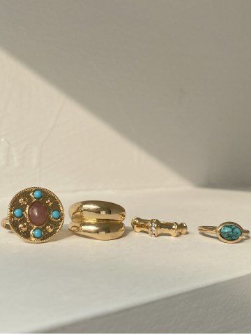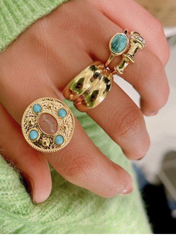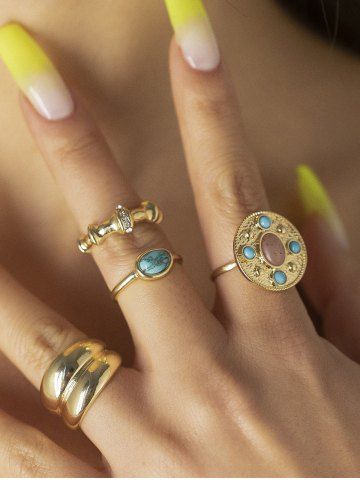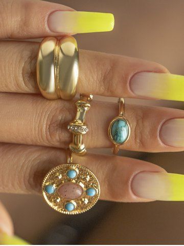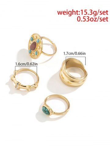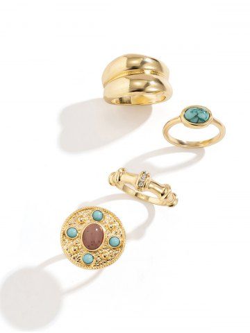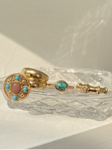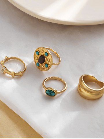 4Pcs Vintage Court Style Turquoise Decor Rings - Golden