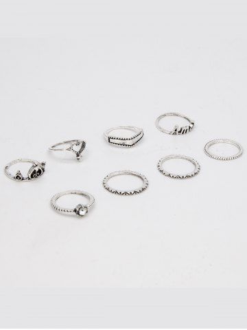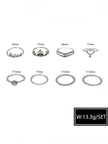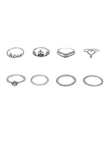 8Pcs Crown Diamond Letter Heart Rings - Silver