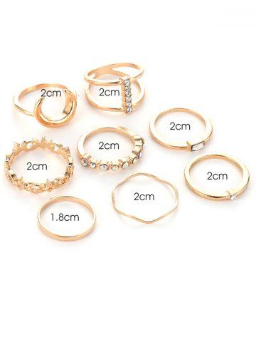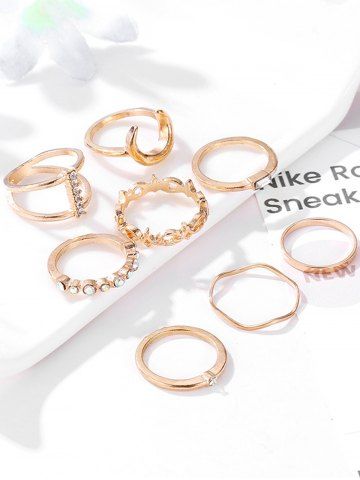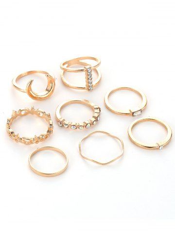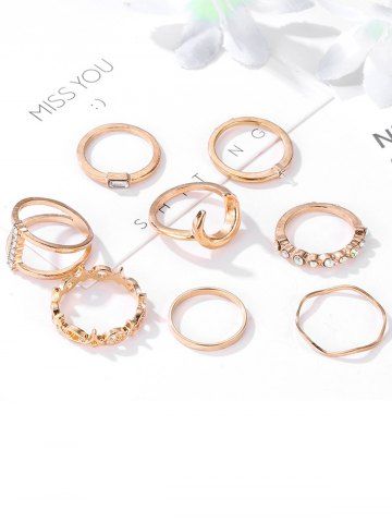 8Pcs Rhinestone Moon Joint Figure Ring - Golden