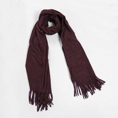 Soft Artificial Wool Fringed Long Scarf - Wine Red