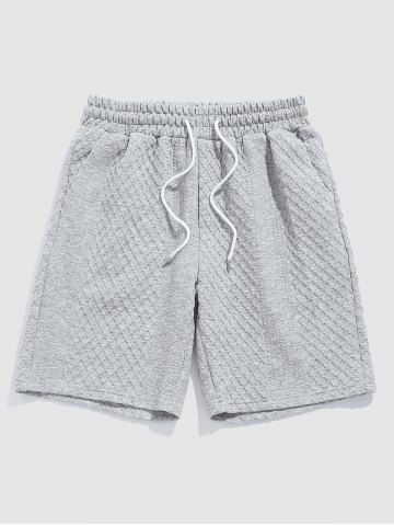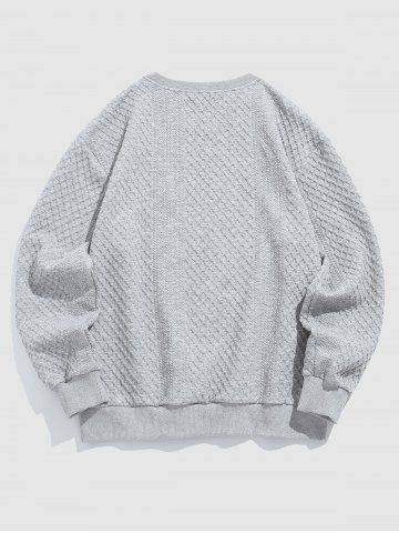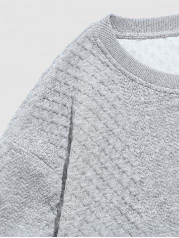 Crew Neck Drop Shoulder Jacquard Pullover Sweatshirt Drawstring Knee Length Shorts Two Piece Set - Gray - L