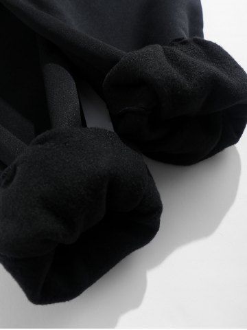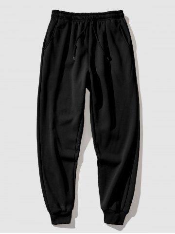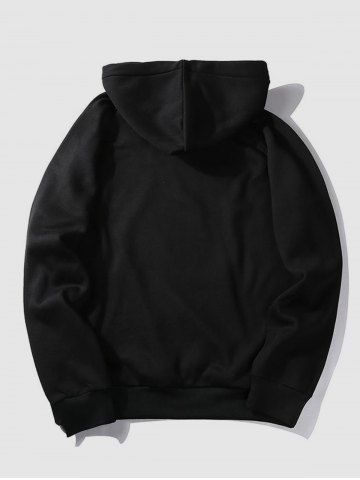 Men's Basic Minimalist Style PARIS Pattern Kangaroo Pocket Fleece-lined Hoodie and Drawstring Beam Feet Jogger Pants Set - Black - S