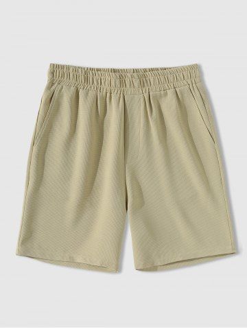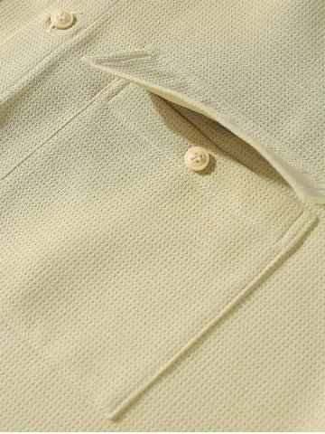 Men's Basic Plain Color Double Flap Pockets Design Textured Button Front Short Sleeves Shirt and Shorts Casual Set - Beige - L