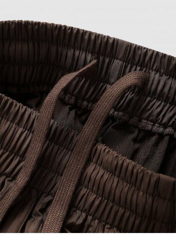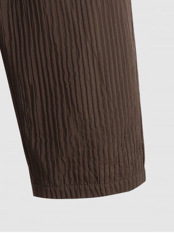Men's Casual Athleisure Style Solid Color Matching Co Ord Textured Jacquard Drawstring Pullover Hoodie and Tapered Pants Two Piece Set - Deep Coffee - Xl