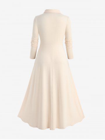 Shirt Dresses > Plus Size Medieval Renaissance Plaid Grommets Lace Up Tie Pockets Layered Shirt Collar 2 In 1 Dress
