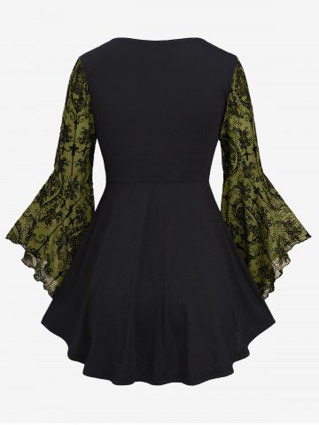 s*****n4Color: CONCORD Size: L | US 12très jolie tunique, je la pensais en dentelle elle est en velours très léger avec des motifs velours noirs également. Cette tunique est pour ma fille qui met un 44 fr taille 84 cm hanches 104/105 et tour de poitrine 95D, la poitrine sur la tunique est un peu grande pour son 95D, il va falloir faire un point de couture pour arranger cela sinon ça baille, dommage. l'effet est ravissant et lui va à ravir.