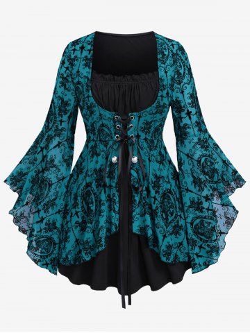 s*****n4Color: CONCORD Size: L | US 12très jolie tunique, je la pensais en dentelle elle est en velours très léger avec des motifs velours noirs également. Cette tunique est pour ma fille qui met un 44 fr taille 84 cm hanches 104/105 et tour de poitrine 95D, la poitrine sur la tunique est un peu grande pour son 95D, il va falloir faire un point de couture pour arranger cela sinon ça baille, dommage. l'effet est ravissant et lui va à ravir.
