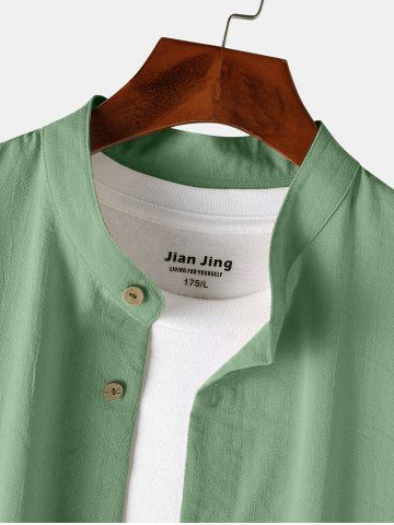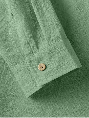 Cotton and Linen Textured Long Sleeves Basic Shirt - Light Green - Xxl