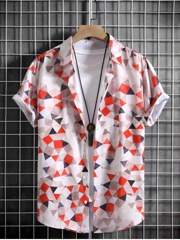 Geometric Pattern Short Sleeve Shirt - Multi-a - Xxl