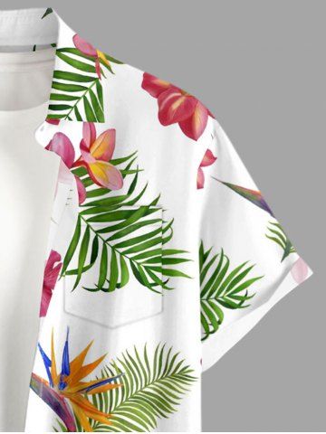 Hibiscus Flowers Tropical Leaf Print Buttons Pocket Hawaii Shirt For Men - White - L