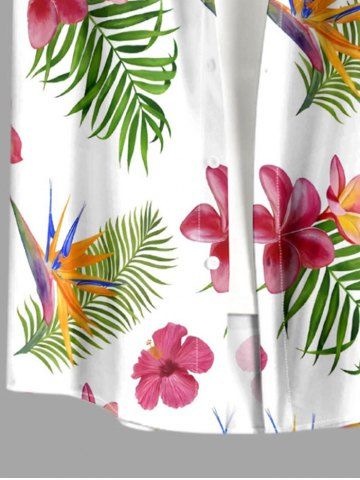 Hibiscus Flowers Tropical Leaf Print Buttons Pocket Hawaii Shirt For Men - White - 4xl
