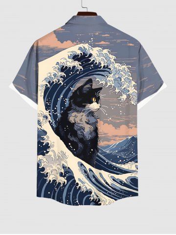 Short Sleeves Shirts > Men's Cat Sea Waves Cloud Print Buttons Pocket Shirt