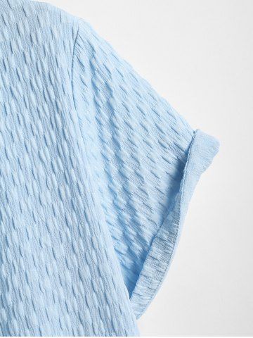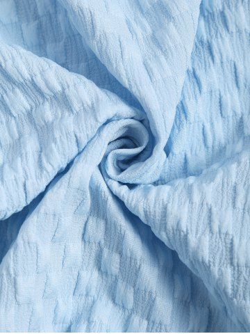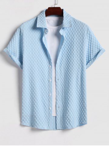 Men's Checkerboard Textured Button Up Short Sleeves Shirt - Light Blue - M