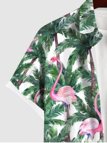 Men's Flamingo Coconut Tree Print Buttons Pocket Hawaii Shirt - Green - S