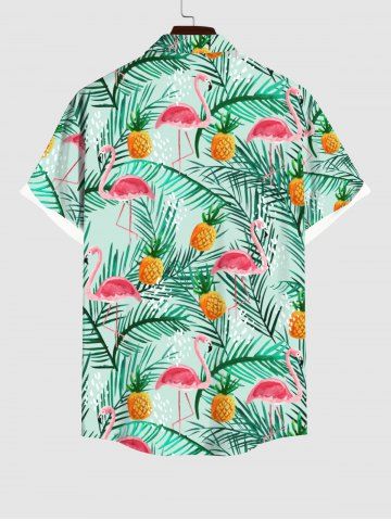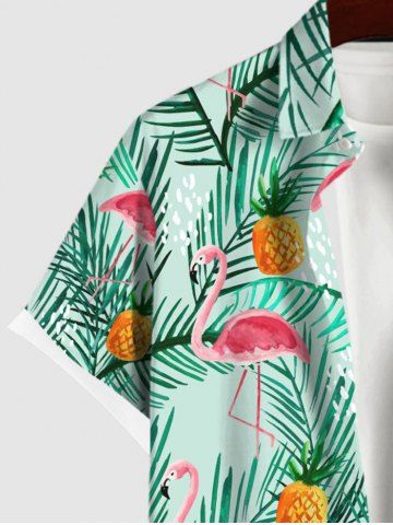 Men's Flamingo Pineapple Palm Tree Leaf Print Buttons Pocket Hawaii Shirt - Green - 3xl