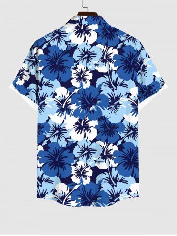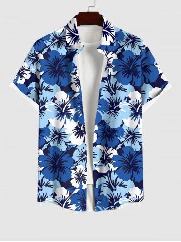 Men's Flowers Print Buttons Pocket Hawaii Shirt - Blue - 3xl