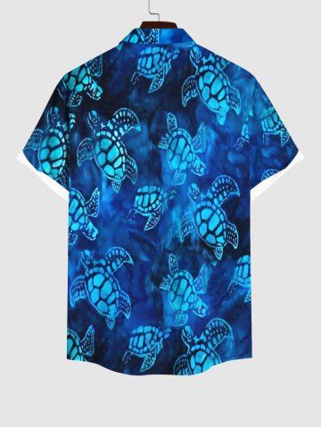 Men's Glitter Ombre Sea Turtle Print Hawaii Sea Creatures Button Pocket Shirt - Blue - 4xl