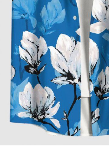 Men's Ombre Flower Print Button Pocket Hawaii Shirt - Blue - Xl