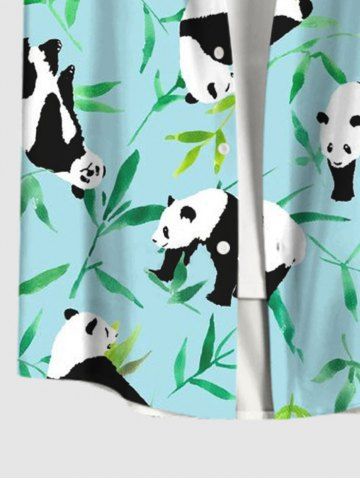 Men's Panda Bamboo Leaf Print Buttons Pocket Hawaii Shirt - Light Green - 3xl