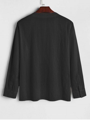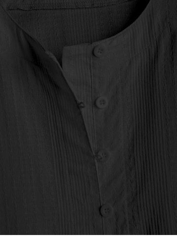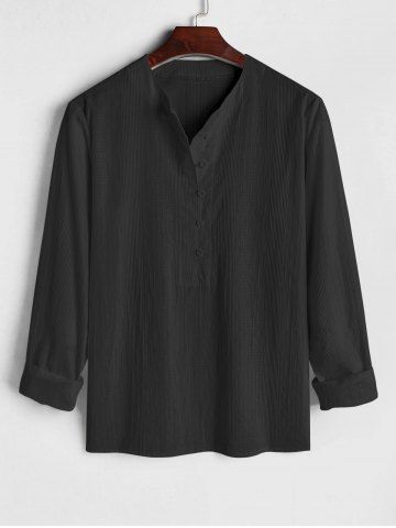 Men's Plain Color Half Button Pullover Long Sleeves Shirt - Black - S