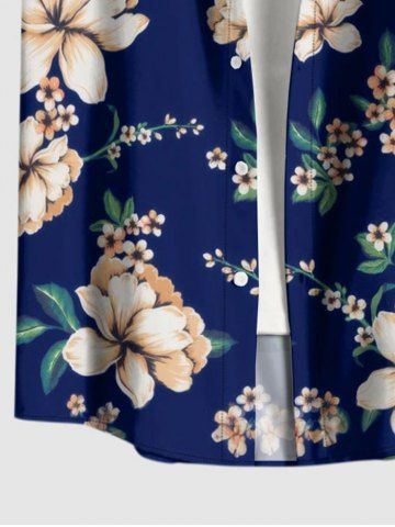 Short Sleeves Shirts > Men's Plus Size Branch Leaf Flower Print Hawaii Button Pocket Shirt