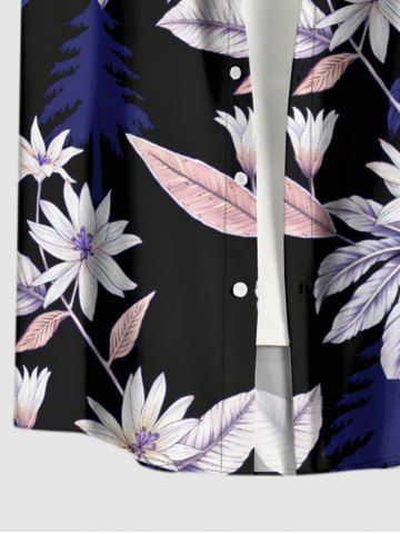 Men's Plus Size Flower Leaf Print Hawaii Button Pocket Shirt - Concord - M