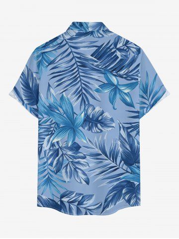 Men's Plus Size Tropical Leaf Flower Print Hawaii Button Pocket Shirt - Blue - 2xl