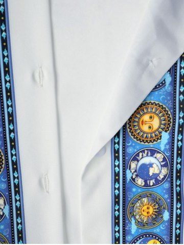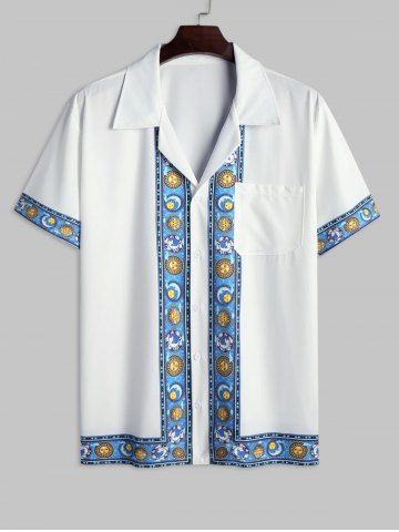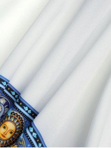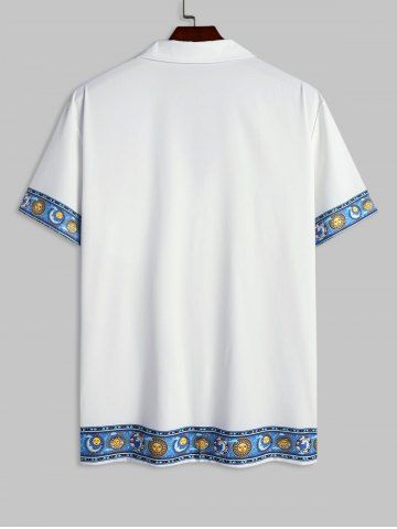 Men's Sun and Moon Galaxy Print Colorblock Lapel Collar Short Sleeves Summer Beach Vacation Shirt - White - Xl