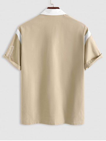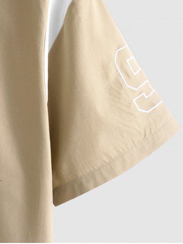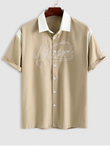 NEW YORK Embroidery Short Sleeves Colorblock Shirt - Coffee - Xxl