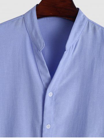 Plain Color V Neck Casual Short Sleeves Shirt - Blue - S