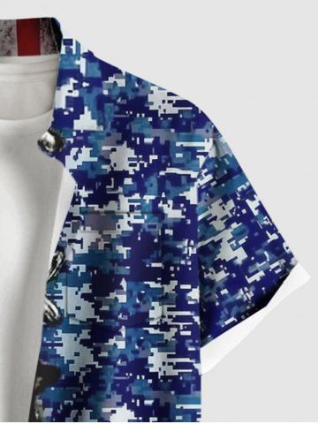 Plus Size 3D Lace Up Patriotic American Flag Camouflage Chain Print Button Pocket Shirt For Men - Deep Blue - 6xl