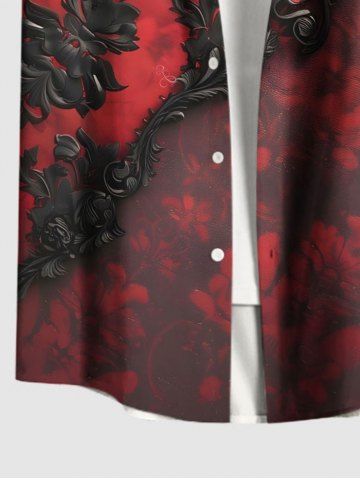 Plus Size 3D Ombre Vintage Flower Print Halloween Button Pocket Shirt For Men - Red - 4xl