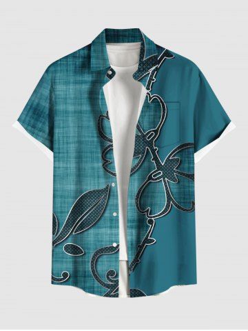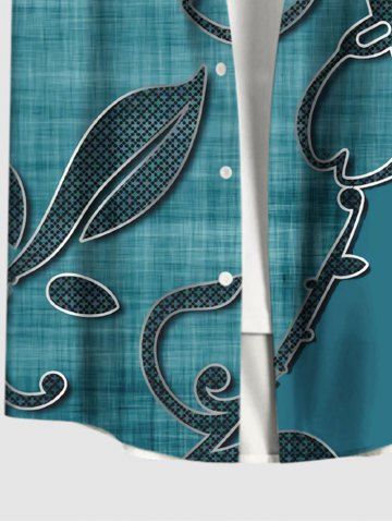 Plus Size 3D Textured Flower Leaf Print Hawaii Button Pocket Shirt For Men - Deep Green - M